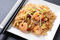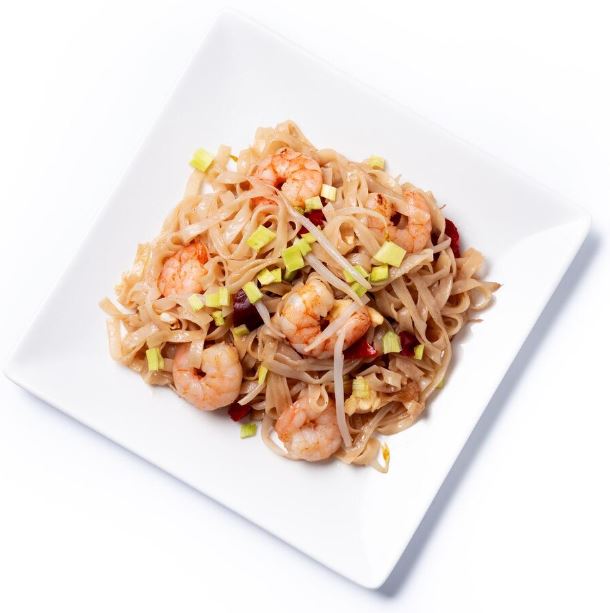 Рисовая лапша, обжаренная с яйцом, луком и морковью. Заправлена соевым и устричным соусом.