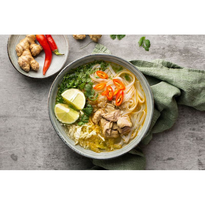 Классический вьетнамский суп на говяжьем бульоне с рисовой лапшой и тонкими ломтиками говядины.